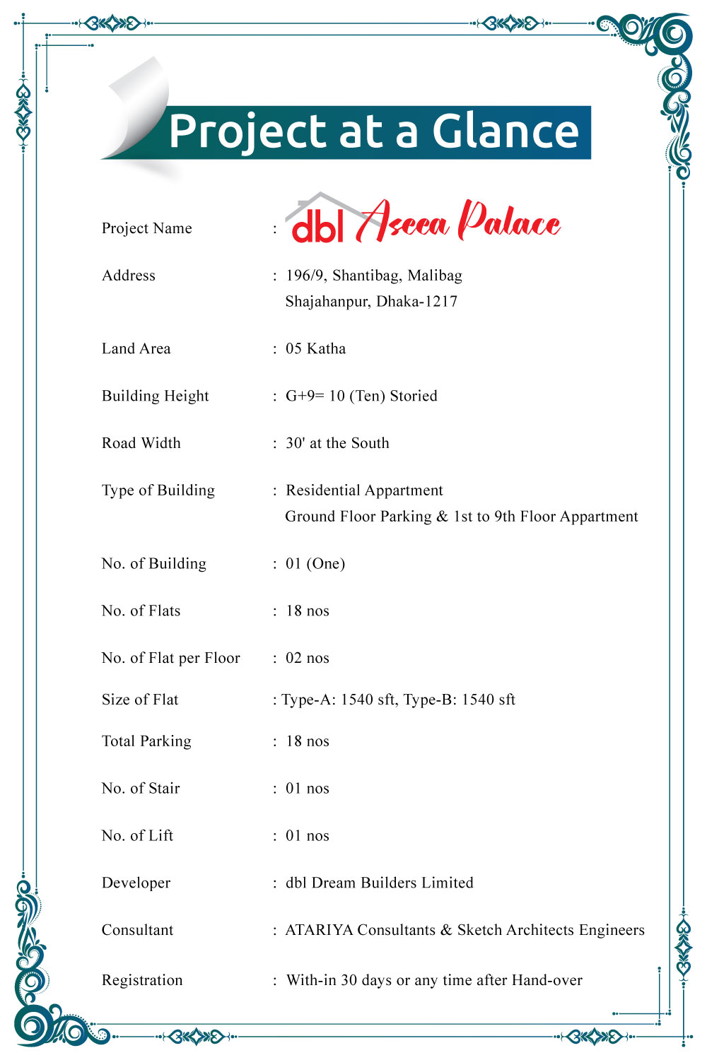 DBL Dream Builders Ltd. proudly presents our most iconic residential project in the heart of Shantibag, Malibag: DBL Aseea Palace.
