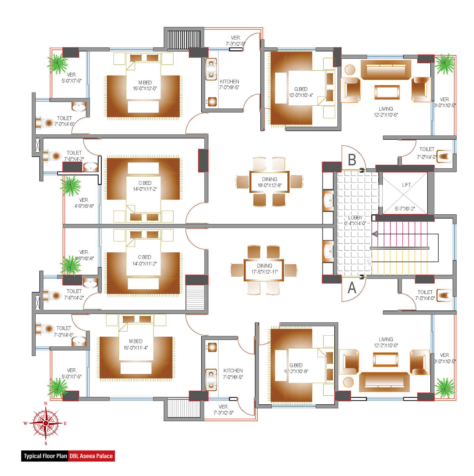 | Size of Flat | Type-A: 1540 sft, Type-B: 1540 sft |