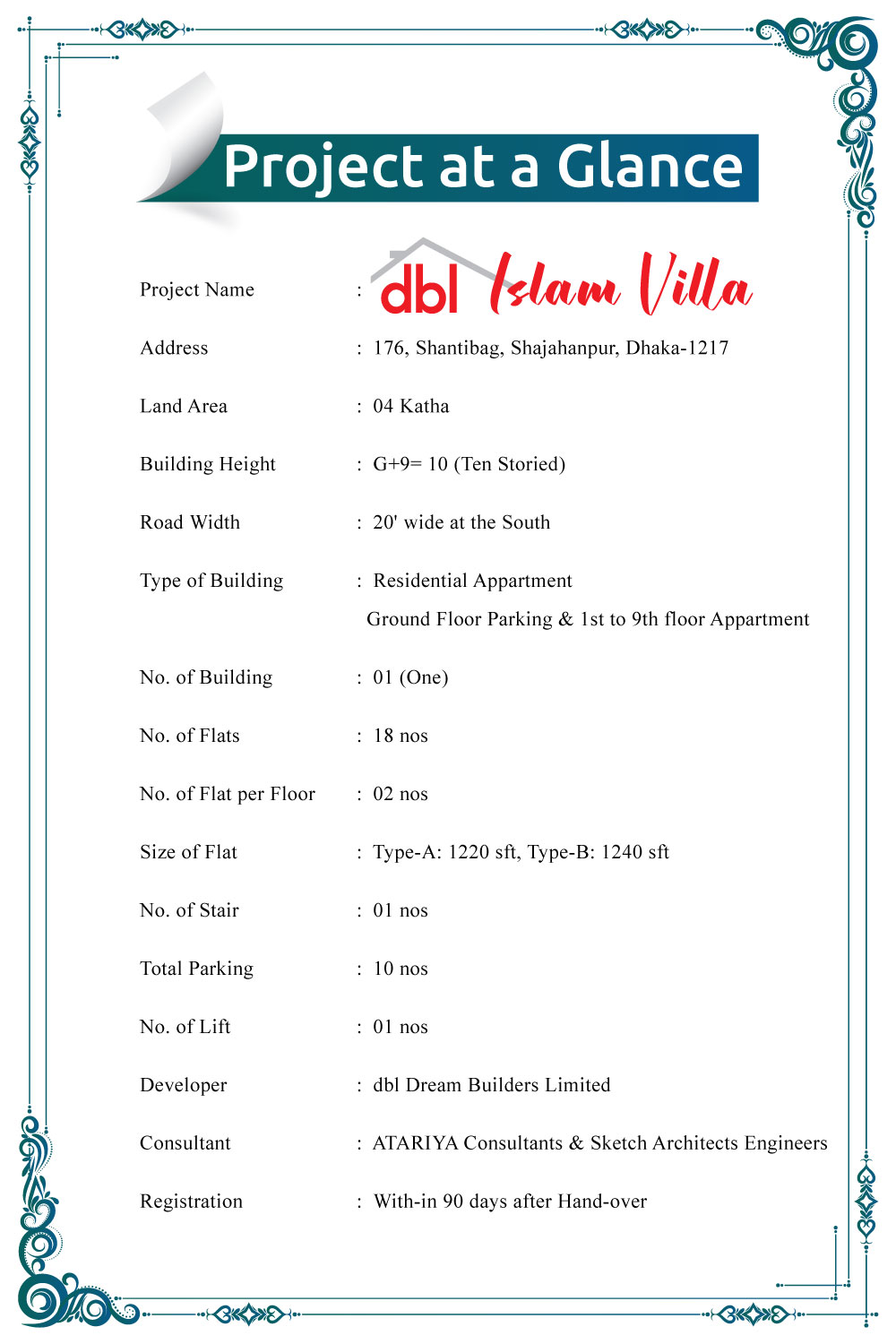 DBL Dream Builders Ltd. proudly presents our most iconic residential project in the heart of Shantibag: DBL Islam Villa.