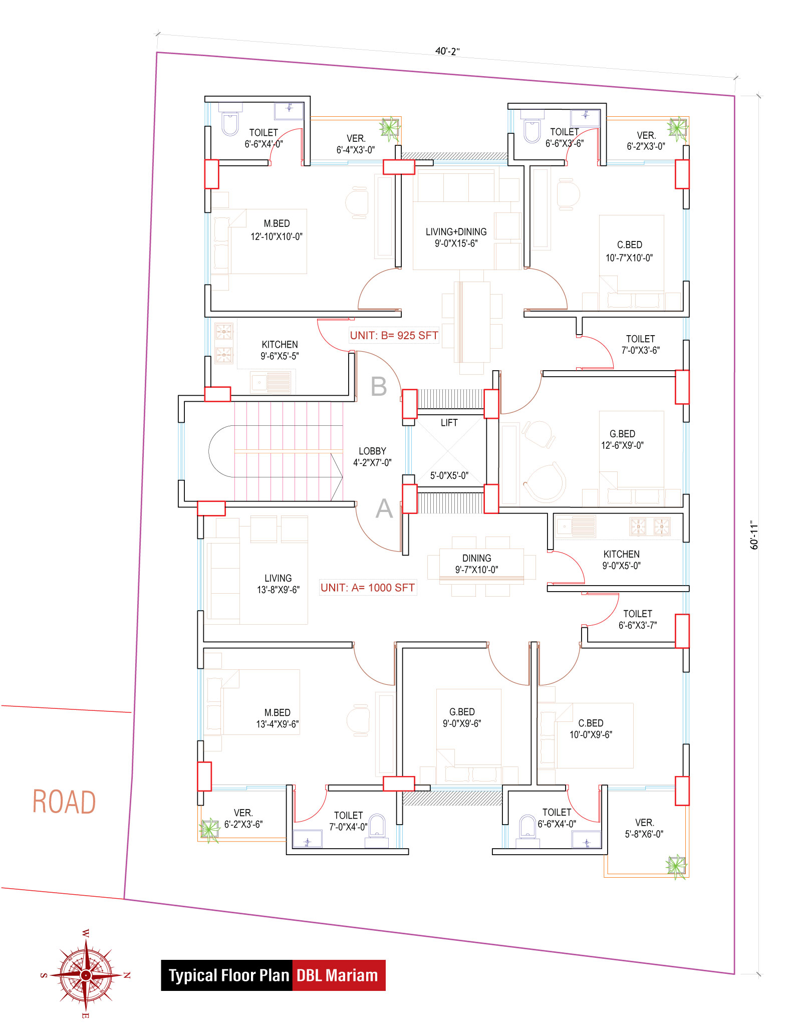 Size of Flat | Type-A: 1000 sft, Type-B: 947 sft |