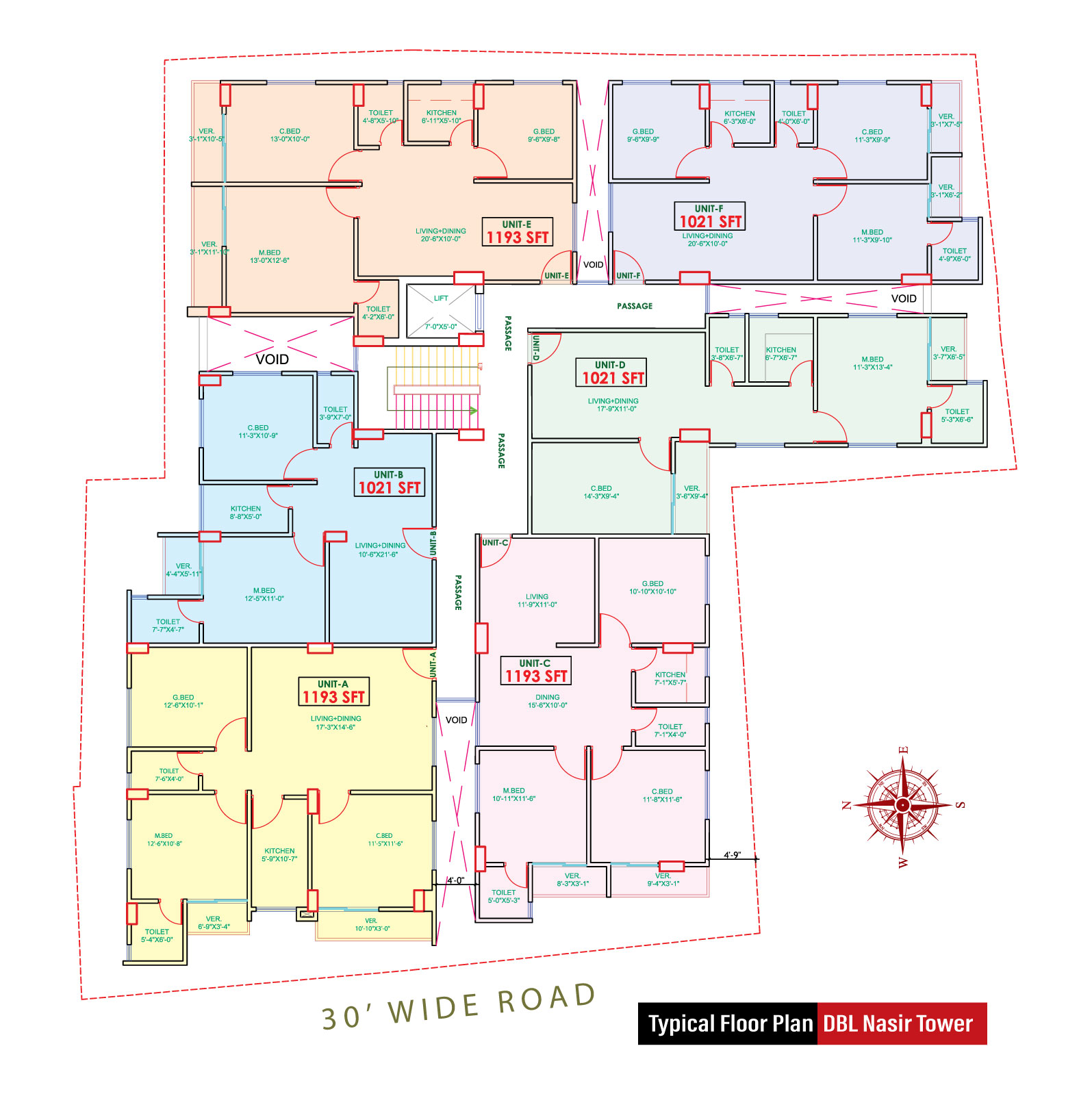 Size of Flat | Type A:1193 sft, Type B: 1021 sft, Type C: 1193 sft Type D: 1021 sft, Type E: 1193 sft, Type F: 1021 sft |